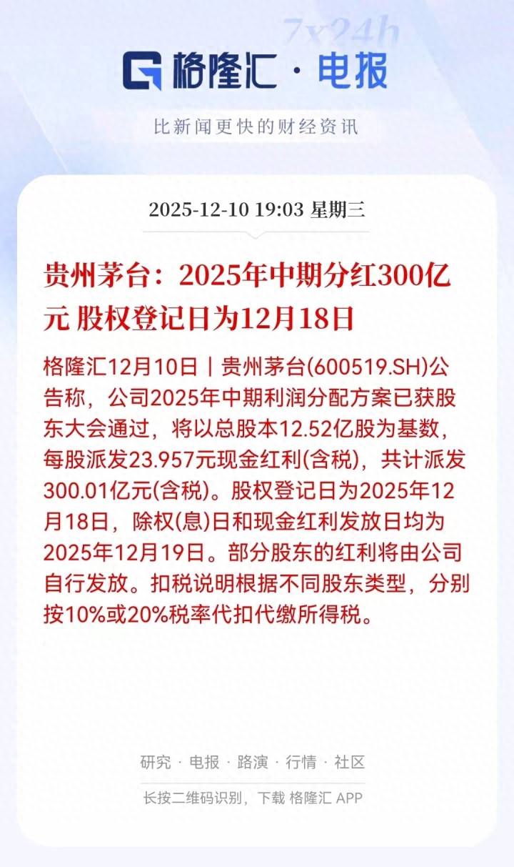 茅台300亿中期分红炸场给股东发24元"大红包", 这波操作太圈粉